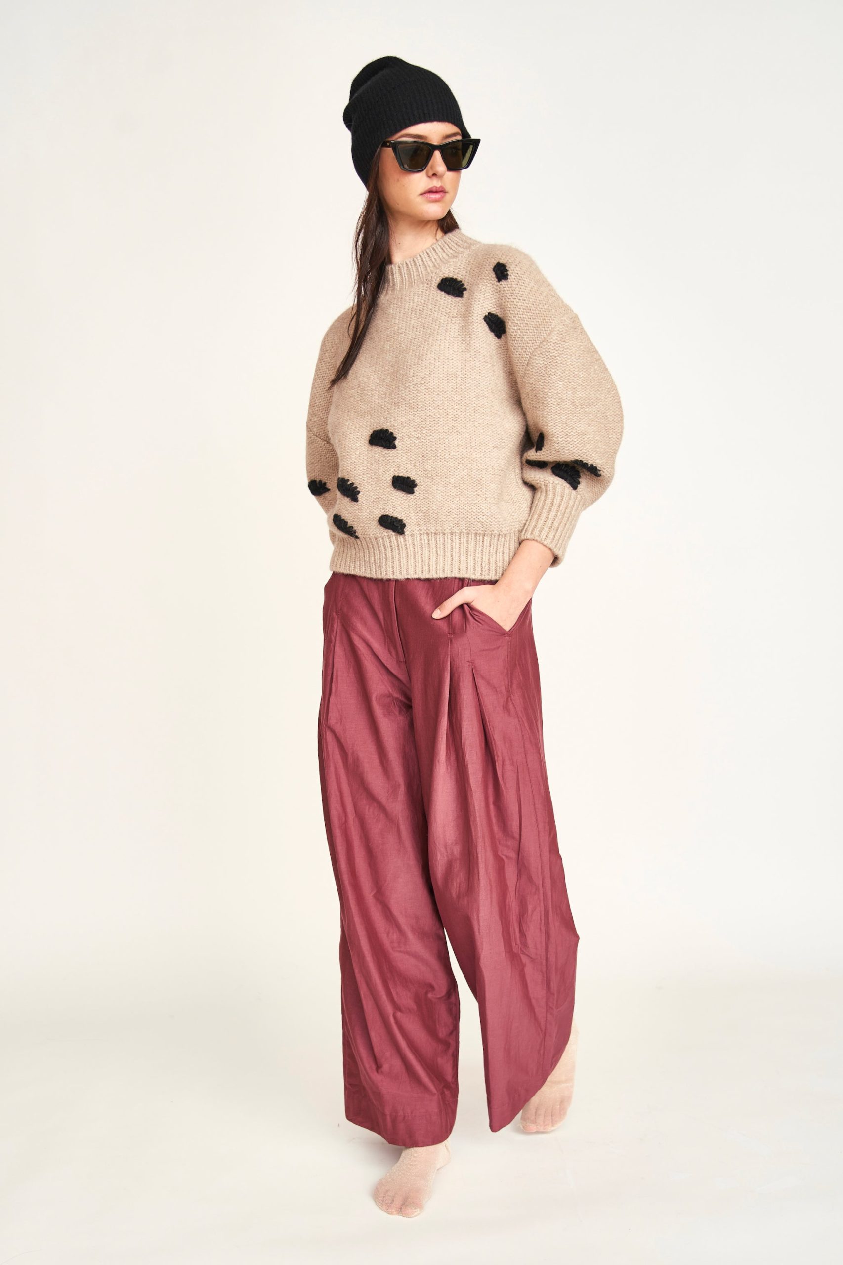 - Heavier weight winter pullover with hand embroidered embellishments