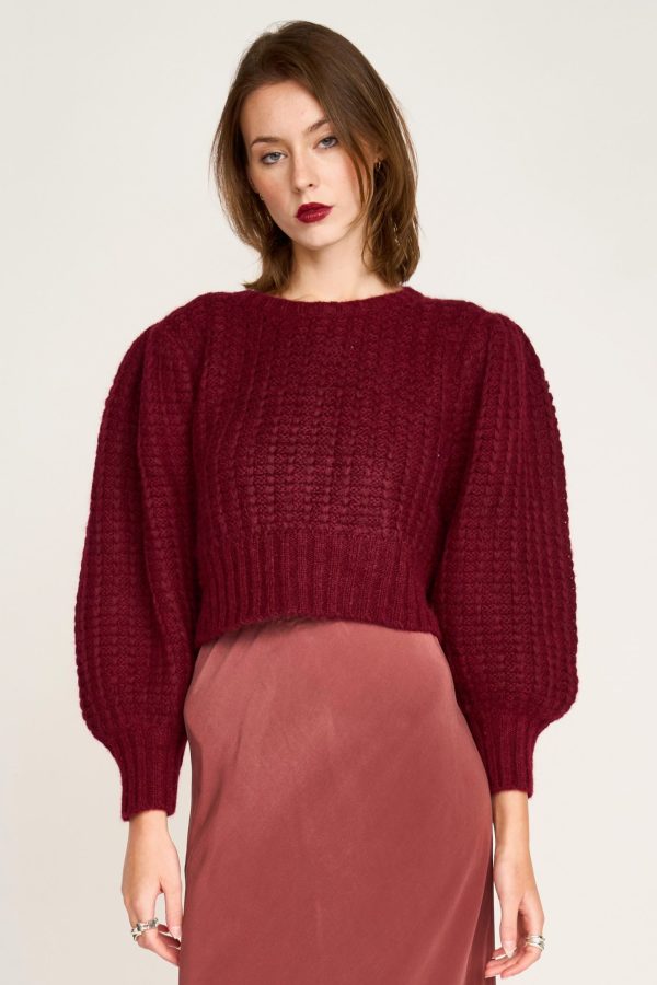 Valmorel Puff Sleeve Pullover in Black Cherry